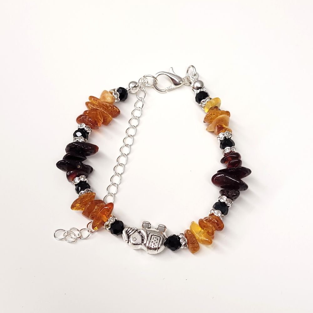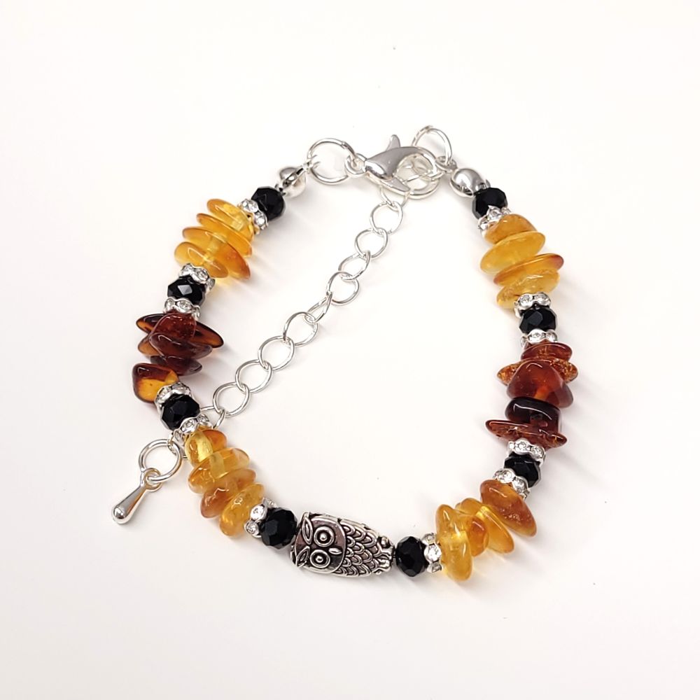 Bursztyn naturalny, linka jubilerska, metal jubilerski, kryształki sztuczne.