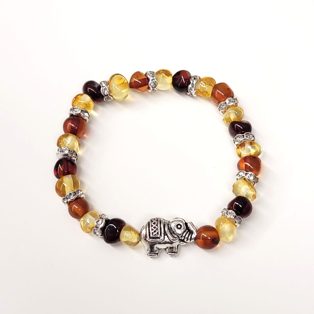 Bursztyn naturalny, metal jubilerski, kryształki sztuczne.
