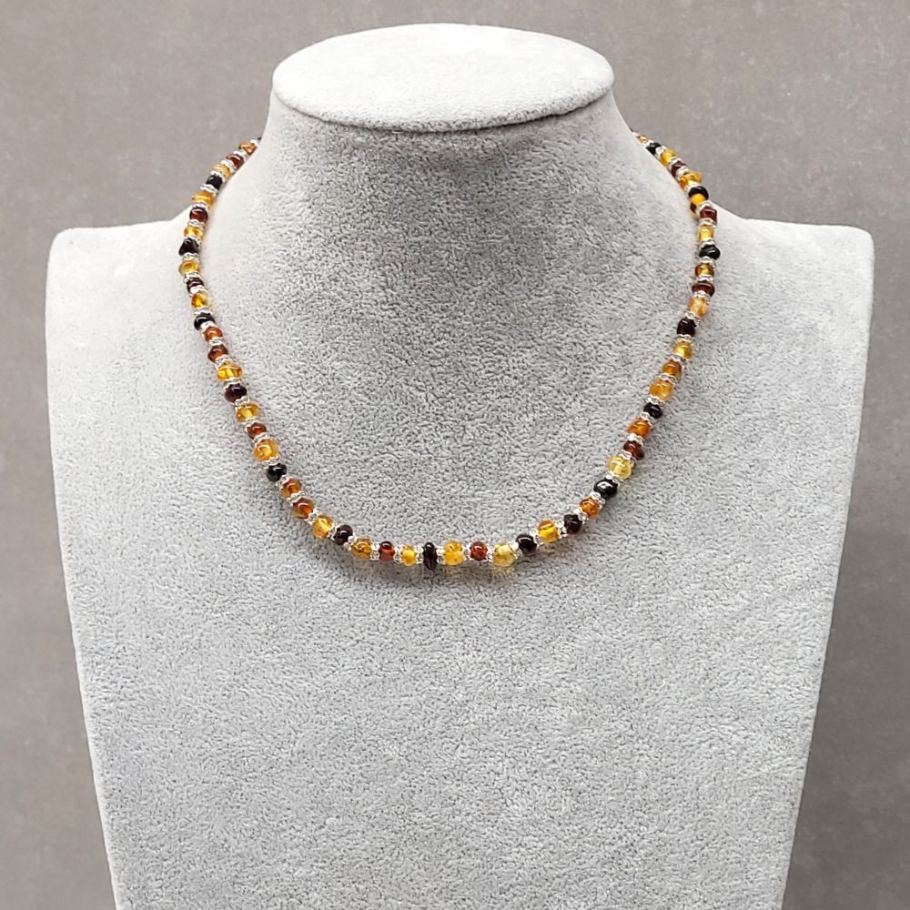 Bursztyn naturalny, linka jubilerska, metal jubilerski, kryształki sztuczne.