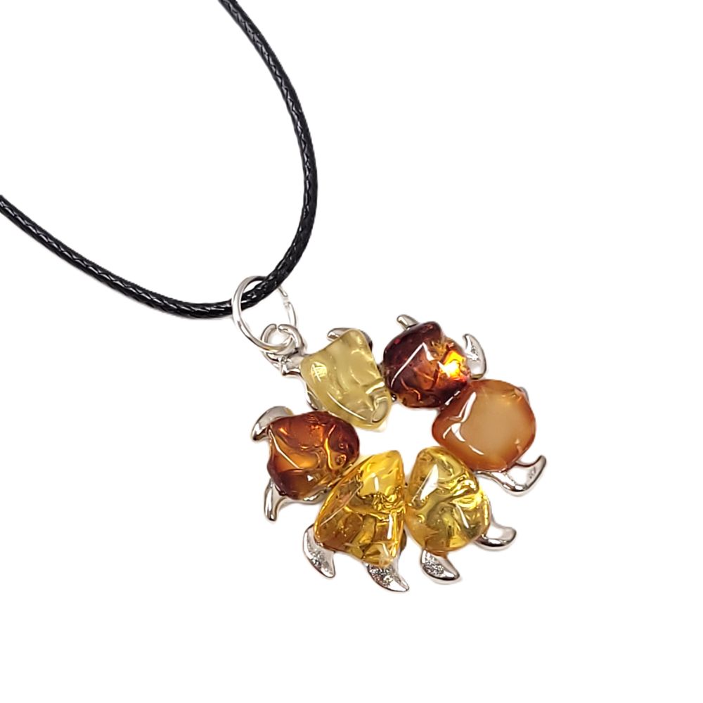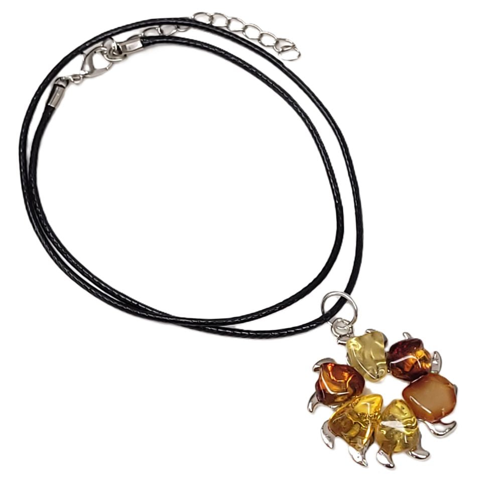 Bursztyn naturalny, metal jubilerski, sznurek jubilerski.