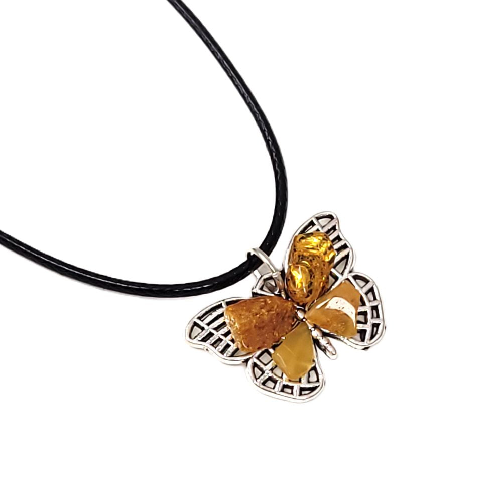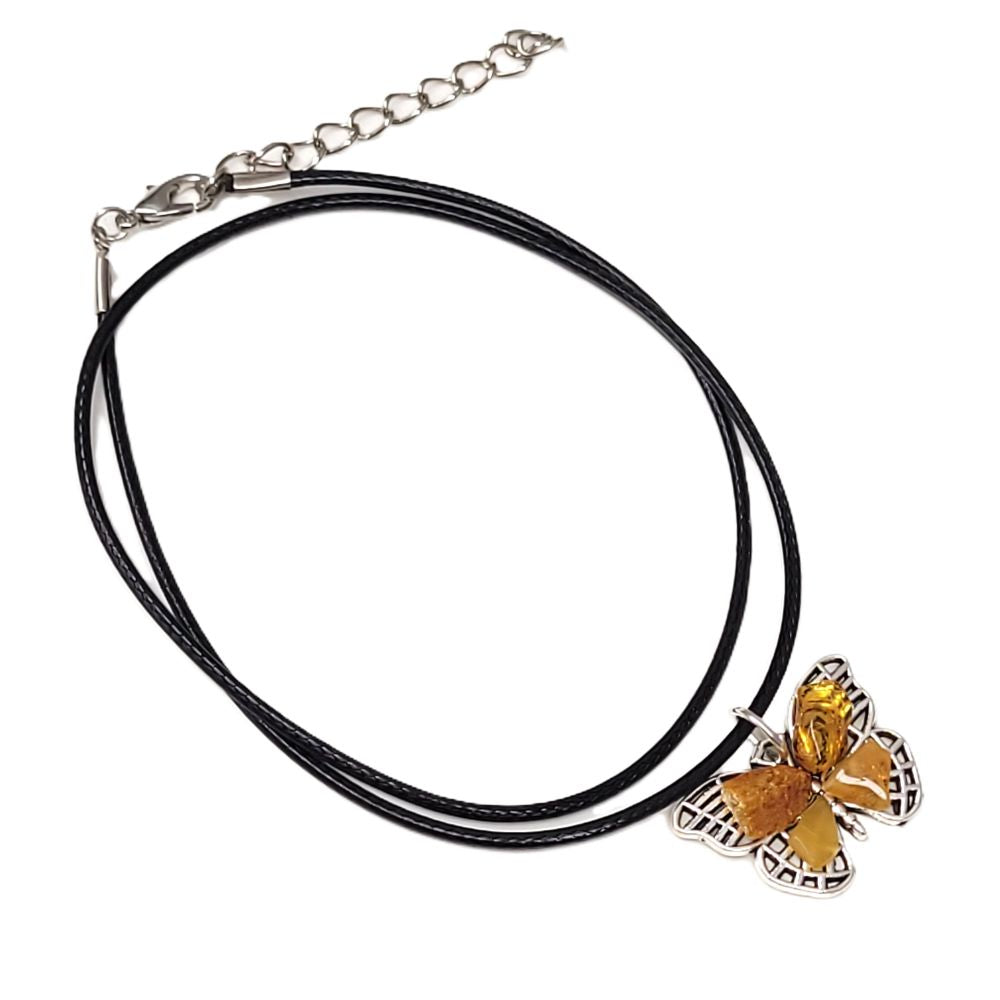 Bursztyn naturalny, metal jubilerski, sznurek jubilerski.