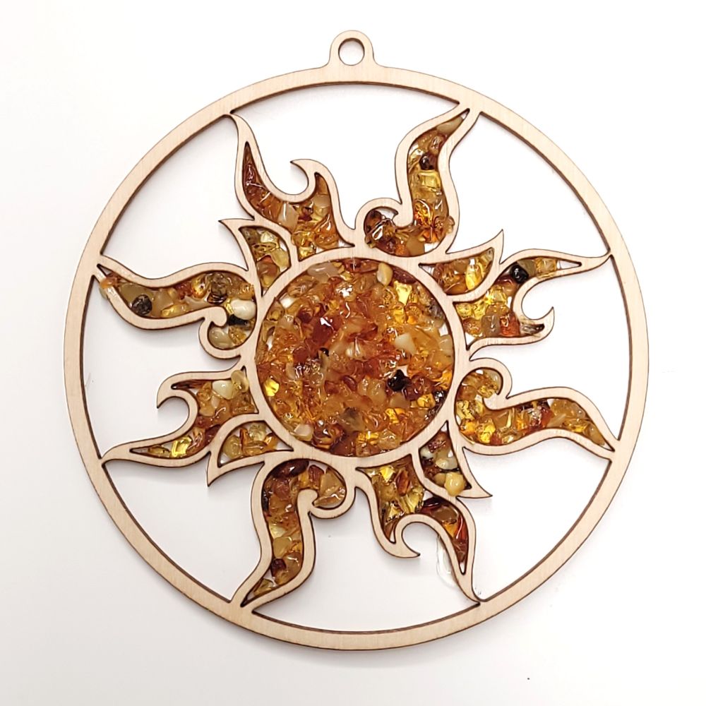 Bursztyn naturalny, sklejka brzozowa, magnesy.
