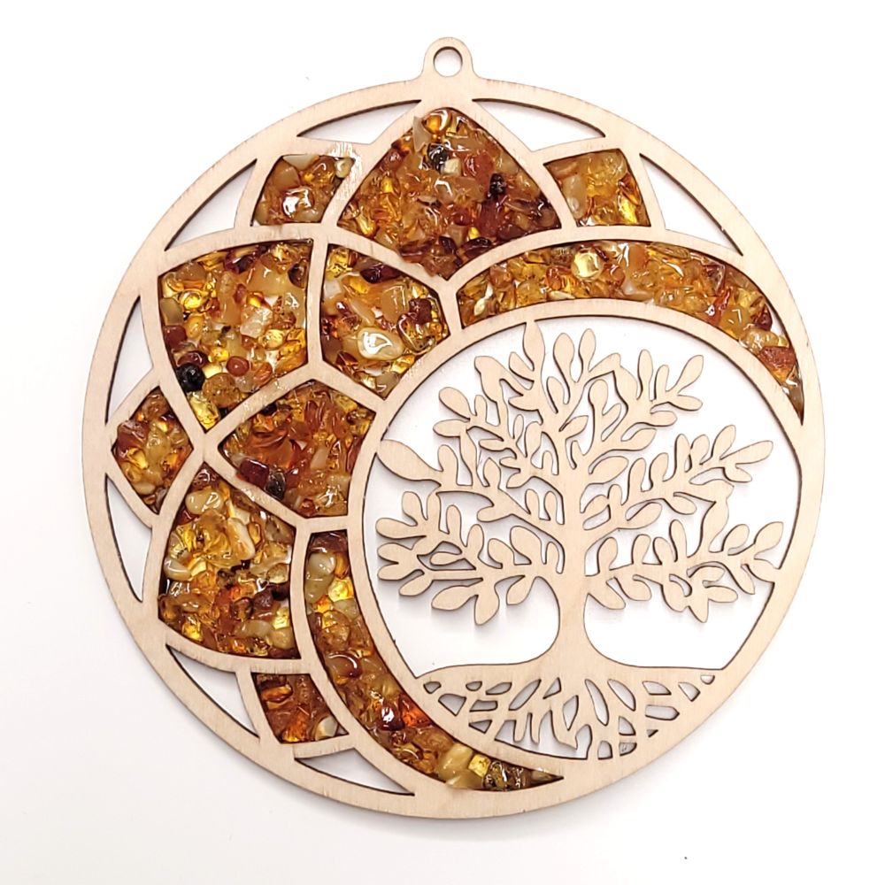 Bursztyn naturalny, sklejka brzozowa, magnesy.