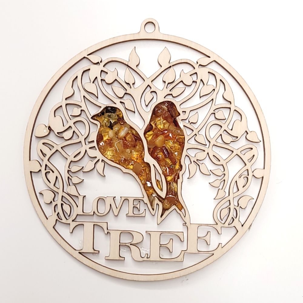 Bursztyn naturalny, sklejka brzozowa, magnesy.