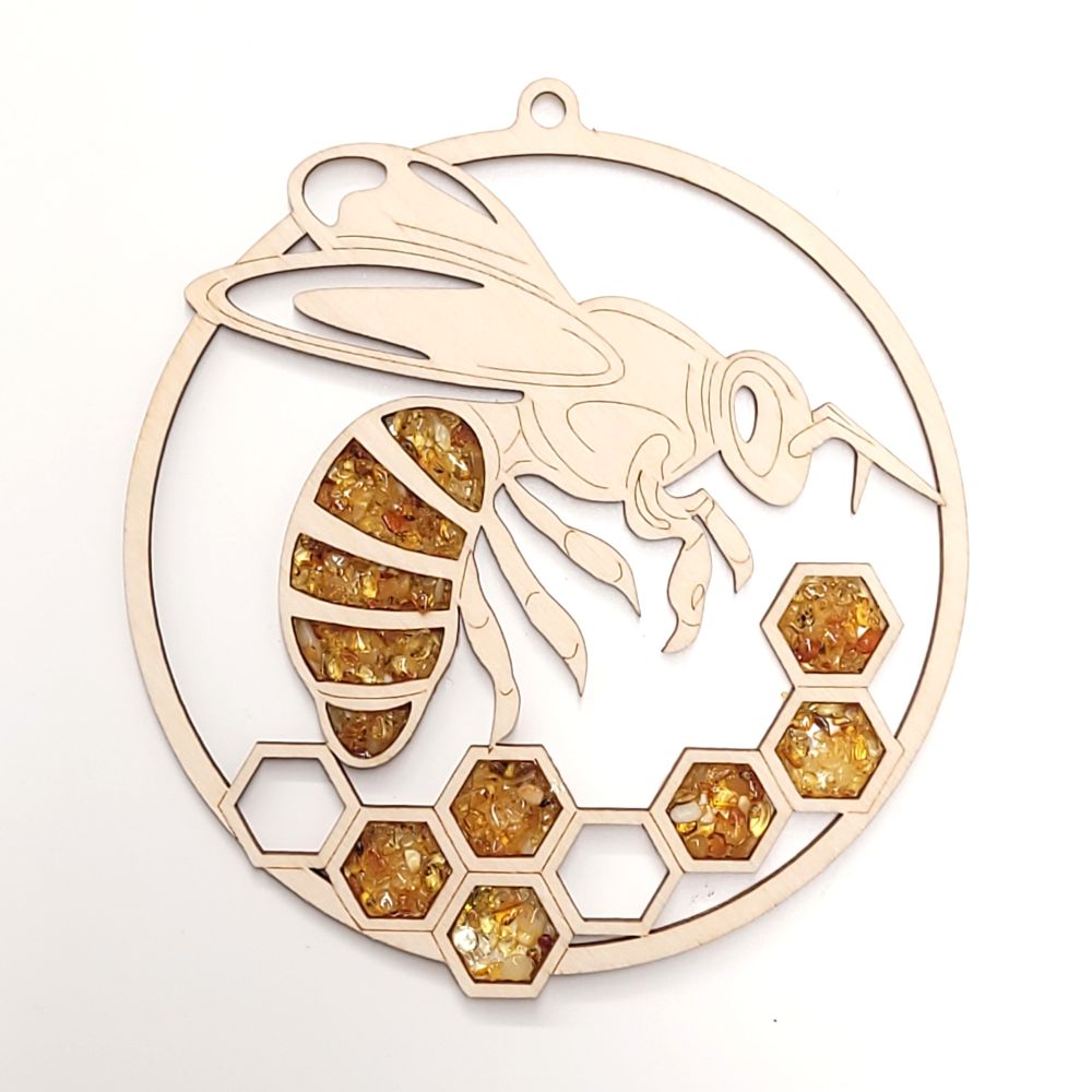 Bursztyn naturalny, sklejka brzozowa, magnesy.