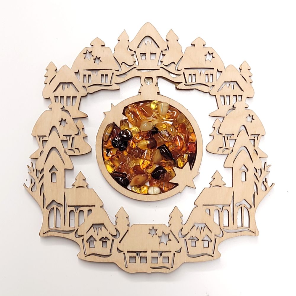 Bursztyn naturalny, sklejka brzozowa, magnesy.