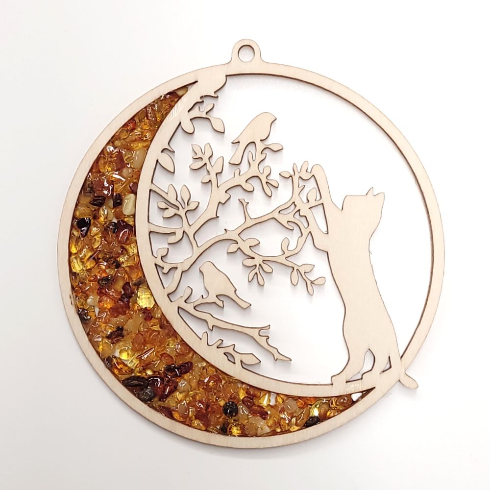 Bursztyn naturalny, sklejka brzozowa, magnesy.