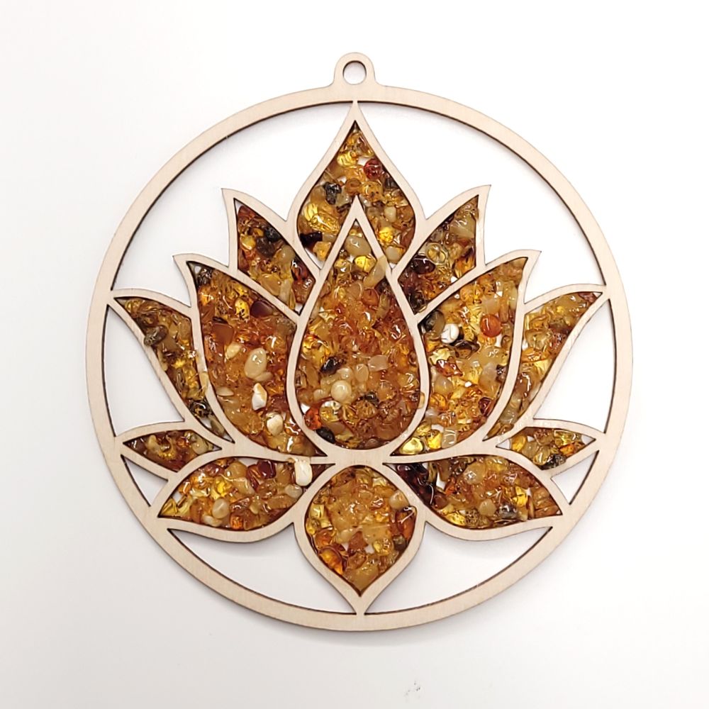 Bursztyn naturalny, sklejka brzozowa, magnesy.