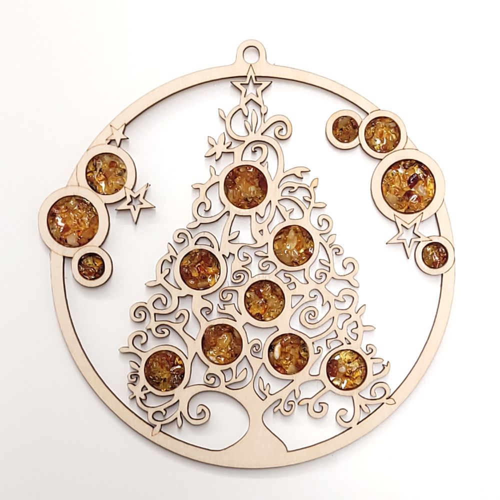 Bursztyn naturalny, sklejka brzozowa, magnesy.