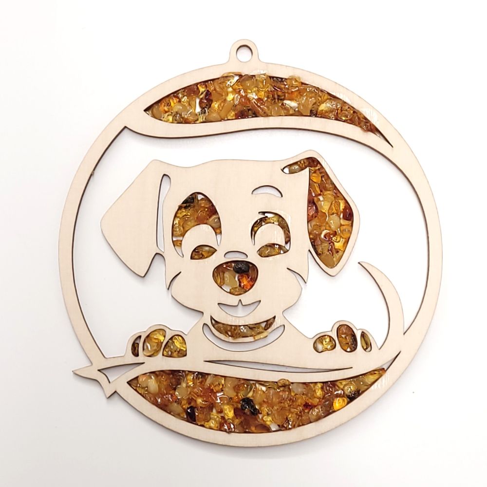 Bursztyn naturalny, sklejka brzozowa, magnesy.
